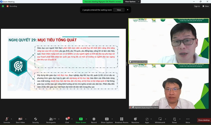 Xuyên suốt nội dung trao đổi, Phó Giáo sư Nguyễn Chí Thành đã chia sẻ với người tham gia Tọa đàm các nội dung chính: Nghị quyết 29 liên quan đến đổi mới giáo dục nói chung và giáo dục đại học nói riêng, trong đó tập trung vào mục tiêu của lĩnh vực giáo dục đại học;