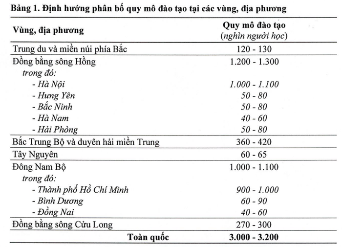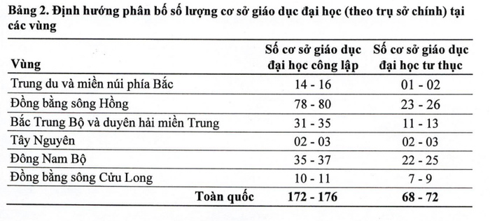 Định hướng phân bố quy mô đào tạo và số lượng cơ sở giáo dục đại học theo trụ sở chính tại các vùng, địa phương cụ thể như sau: