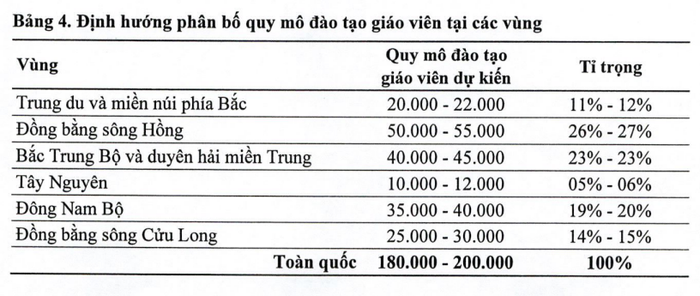 Định hướng phân bố quy mô đào tạo giáo viên tại các vùng: