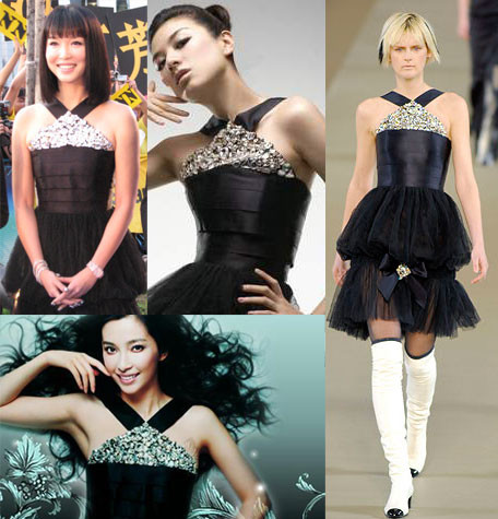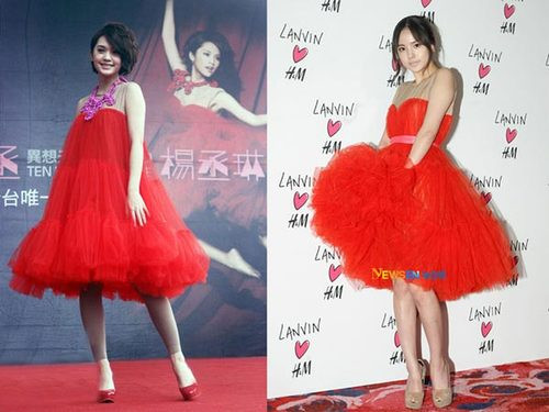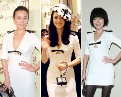 (GDVN) - Các mỹ nhân Hoa ngữ rất chịu khó đầu tư hàng trăm ngàn đô để sở hữu những trang phục hàng hiệu đắt tiền, nhưng họ không tránh khỏi việc mặc giống ai đó và số lần 'đụng hàng' của các người đẹp xem ra không hiếm.