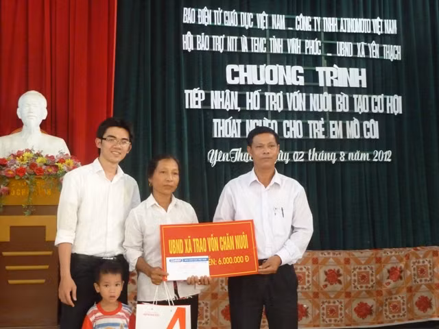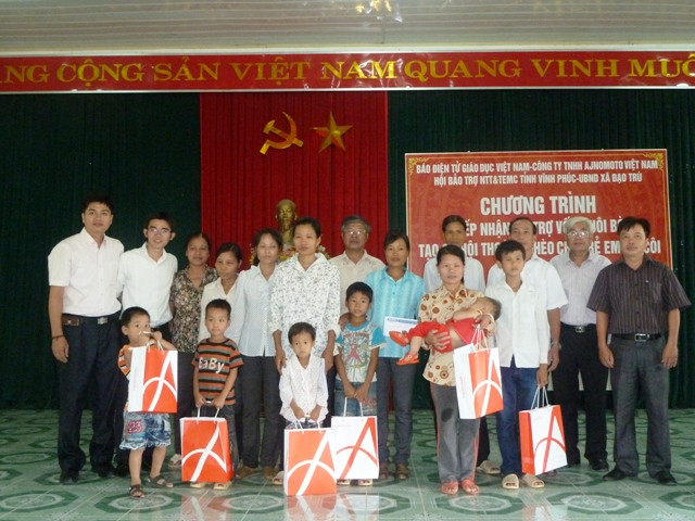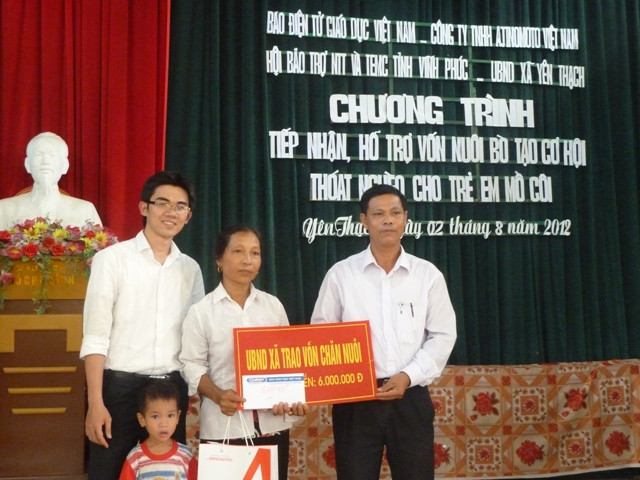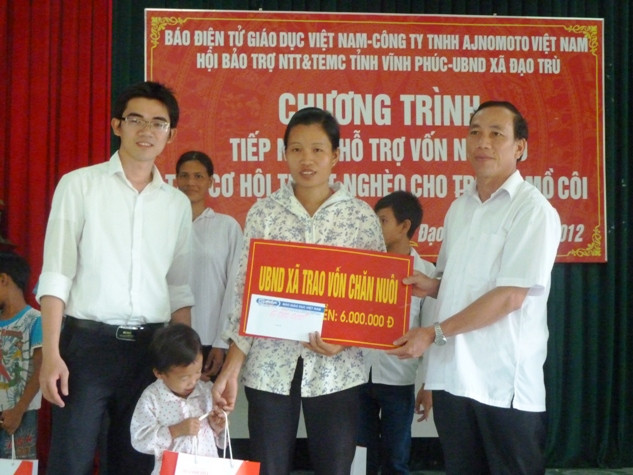 Nhận thấy đây là mô hình thiết thực, ý nghĩa, Công ty Ajinomoto Việt Nam kết hợp cùng báo Giáo dục Việt Nam giúp đỡ và trao trực tiếp 6 triệu đồng/em cho 8 trường hợp trẻ mồ côi 2 xã miền núi nghèo của tỉnh Vĩnh Phúc với mục đích hỗ trợ nuôi bò, tạo cơ hội thoát nghèo cho các em khuyết tật, mồ côi.