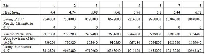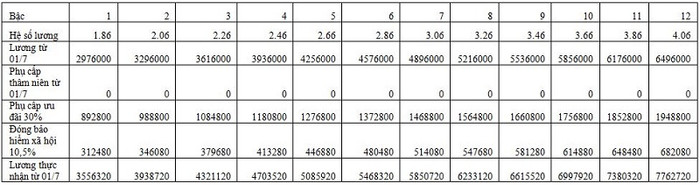 Lương = Hệ số lương x 1.600.000 đồng