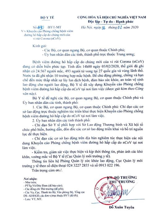 - Có quy định và hướng dẫn người lao động cách tự bảo vệ, thực hiện đầy đủ các khuyến cáo của Bộ Y tế khi có các biểu hiện mắc bệnh hoặc tiếp xúc với người nghi mắc bệnh.