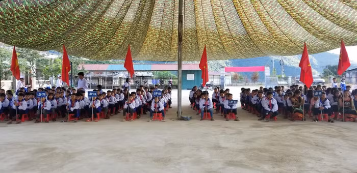 Buổi lễ khai giảng diễn ra tại ngôi trường có vị trí rất đặc biệt, trường nằm trên đỉnh núi, cách biên giới Việt - Trung chỉ vài bước chân.