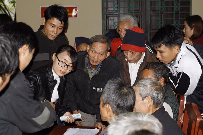 | Những khuôn mặt vui vẻ của bà con khi chờ đợi được nhận quà Tết từ Báo Điện tử Giáo dục Việt Nam (ảnh Trinh Phúc). |