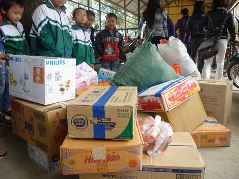 | Rất nhiều quần áo, chăn màn, mỳ tôm, sách vở đã được quyên góp gửi đến các bạn học sinh miền núi trường TH Pả Vi. (Ảnh Thu Hòe) |