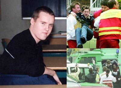 18 người tử vong khi một học sinh cũ bị đuổi học, Robert Steinhäuser, trở về trường ở Erfurt, Đức bắn súng điên cuồng. Hắn đeo mặt nạ, mặc áo đen, đi qua các lớp học và nhắm họng súng vào các học sinh, giáo viên. Hậu quả là 14 giáo viên, 2 học sinh nữ và một cảnh sát có mặt đầu tiên tại hiện trường thiệt mạng. Sau đó, tên sát thủ tự sát.