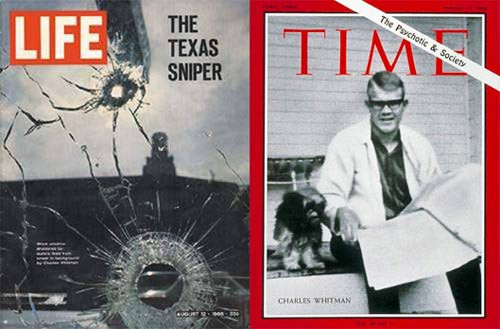 Ngày 1/8/1966, tên Charles Whitman bắn vào khu vực tòa tháp thuộc Đại học Texas ở Austin, Texas khiến tổng số 18 người thiệt mạng và 31 người bị thương. Hắn bị cảnh sát bắn chết tại địa điểm gây án.