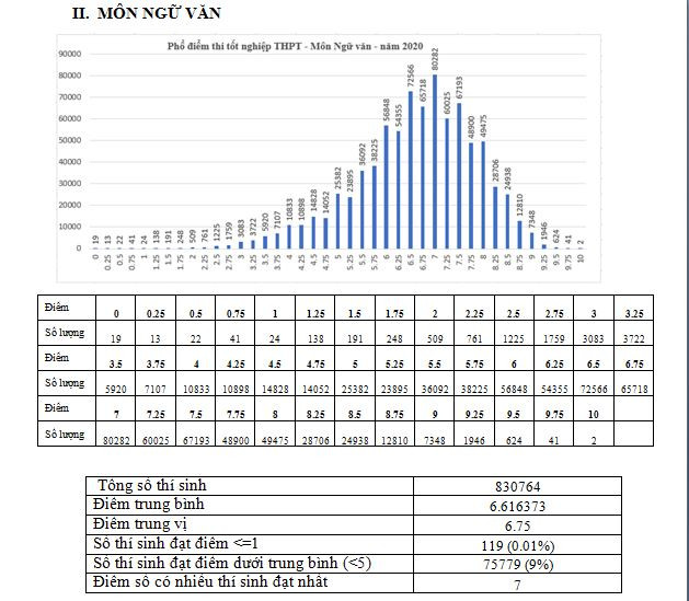Theo số liệu của Bộ Giáo dục và Đào tạo, năm 2020 có 830.764 thí sinh dự thi môn Ngữ văn.
