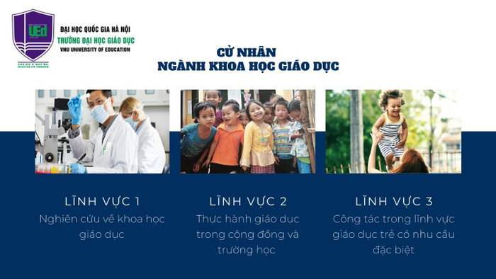 Chương trình cử nhân Khoa học Giáo dục (The Bachelor of Art in Educational Studies) thuộc Trường Đại học Giáo dục – Đại học Quốc gia Hà Nội với thời gian đào tạo 4 năm, 131 tín chỉ nhằm mục tiêu đào tạo nguồn nhân lực nghiên cứu khoa học giáo dục Việt Nam theo hướng hiện đại, lấy tri thức dựa trên thực chứng làm cơ sở ban đầu.