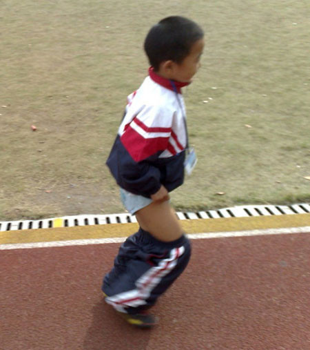 Theo chủ nhân của clip này, hôm 31.10, khi đi ngang sân thể thao của trường tiểu học, anh đã rất bất ngờ khi nhìn thấy ba học sinh nam mặc áo khoác thể thao, nhưng quần dài thì lại bị tụt xuống và cứ thế chạy quanh sân. Bên cạnh đó còn có hai bạn nữ khác cũng đang chạy cùng.