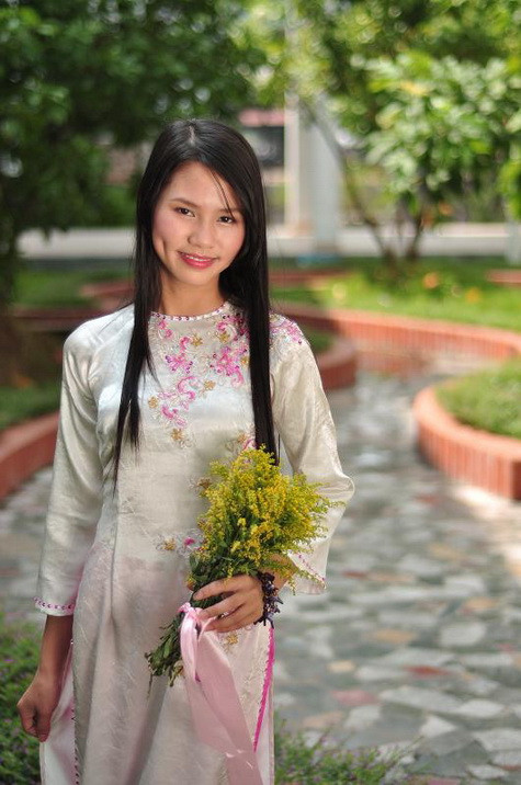 | Ngọc Thúy duyên dáng, nữ tính hơn với chiếc áo dài truyền thống |