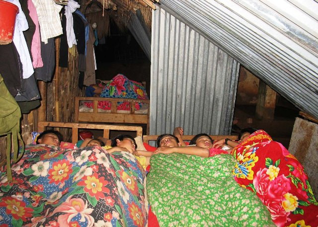 | Ở xã Mù Cả, huyện Mường Tè, tỉnh Lai Châu, một điểm trường từng ghi dấu trong lịch sử, là nơi đầu tiên của rẻo cao Việt nam được xóa mù và phổ cập tiểu học, nhưng các cháu nằm ở giường ngoài trời qua đêm, không phên liếp. |