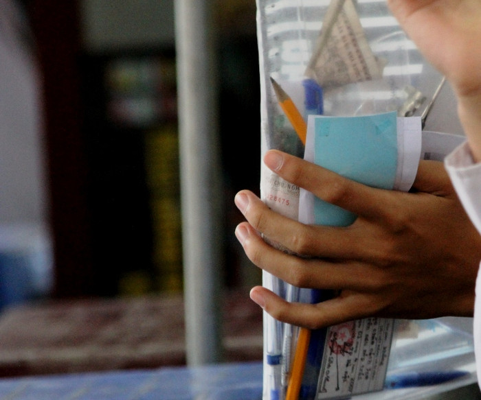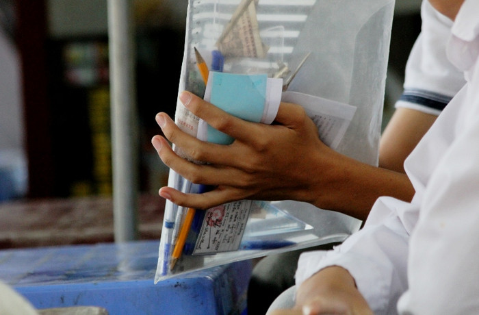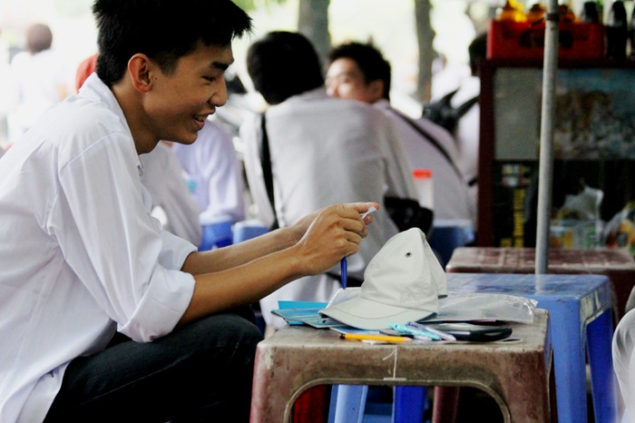 | Bên cạnh đó, rất nhiều thí sinh dự thi tại trường THPT Minh Khai đanh gấp rút chuẩn bị phao thi. |