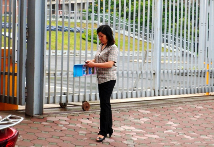 | Sáng nay nhiều thí sinh dự thi quên không mang Atlat vào phòng đành đứng đợi người nhà về lấy. Trong ảnh là một thí sinh dự thi tại trường Amsterdam quên không mang Atlat. |