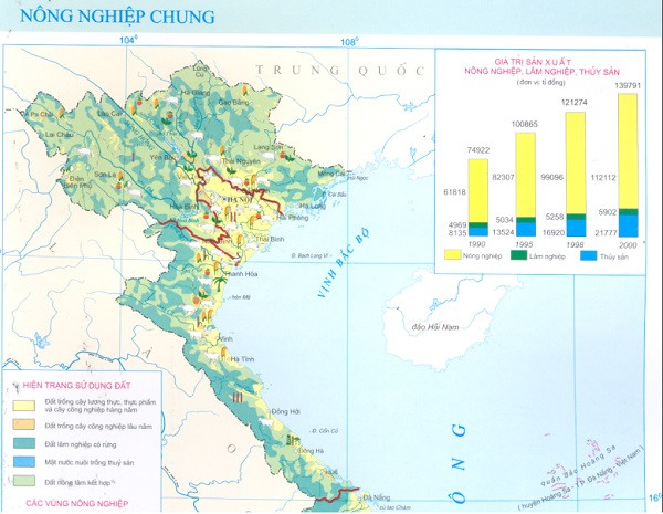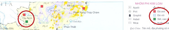 | Hai màu đỏ và lục gây khó khăn cho thí sinh (Ảnh chụp từ Atlat địa lý Việt Nam) |