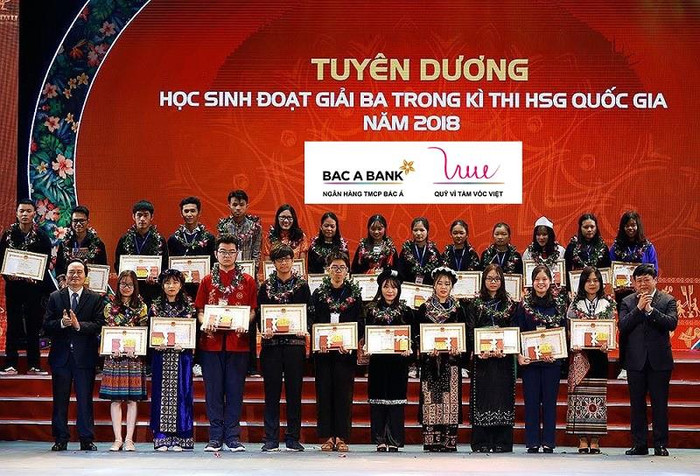 Tại buổi lễ, thông qua Quỹ Vì Tầm Vóc Việt, BAC A BANK ngoài sự tài trợ cho chương trình đã trao học bổng cho 50 em học sinh, sinh viên xuất sắc đạt giải Nhất, Nhì, Ba trong kỳ thi học sinh giỏi quốc gia 2018, mỗi em 1 triệu đồng trong tổng số 166 học sinh, sinh viên dân tộc thiểu số, thuộc 25 dân tộc tại 35 tỉnh, thành phố được tuyên dương năm nay.