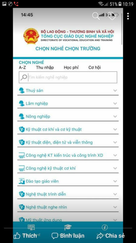 Theo đó, ngoài các tính năng, ứng dụng còn có ngân hàng dữ liệu với hơn 850 nghề ở trình độ như trung cấp, cao đẳng.