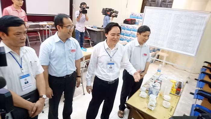 Buổi thi đầu tiên của Kỳ thi THPT Quốc gia 2016 được dư luận quan tâm. Sáng ngày 1/7, Bộ trưởng Bộ GD&ĐT Phùng Xuân Nhạ cùng đoàn chỉ đạo thi của Bộ và TP. Hà Nội đã đến kiểm tra công tác thi tại Đại học Thủy lợi, Học viện Kỹ thuật Quân sự và Trường THPT Quang Minh (H. Mê Linh).