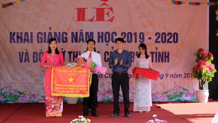 Điều đặc biệt trong lễ khai giảng, thầy và trò Trường Phổ thông dân tộc bán trú Tiểu học Na cô sa vinh dự được đón nhận cờ thi đua của Ủy ban nhân dân tỉnh Điện Biên trao tặng.