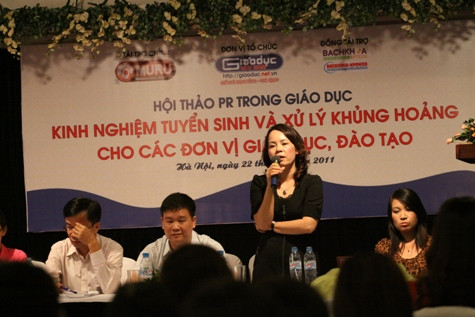 | Bà Nguyễn Bích Hạnh - Giám đốc Truyền thông, Công ty CP Truyền thông V tham dự Hội thảo với tham luận: "Gợi ý phương tiện quảng bá cho các cơ sở giáo dục, đào tạo". |