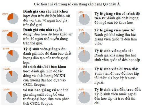 Được biết, các tiêu chí và trọng số của Bảng xếp hạng QS châu Á bao gồm: