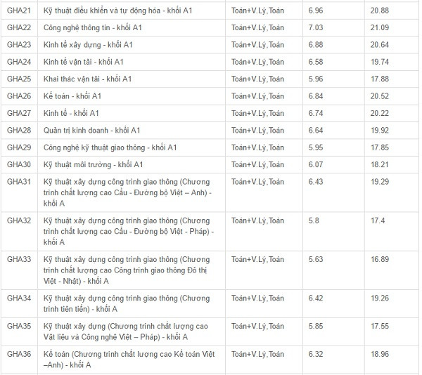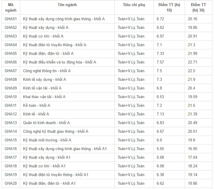 | Điểm trúng tuyển Đại học Công nghệ Giao thông Vận tải. |