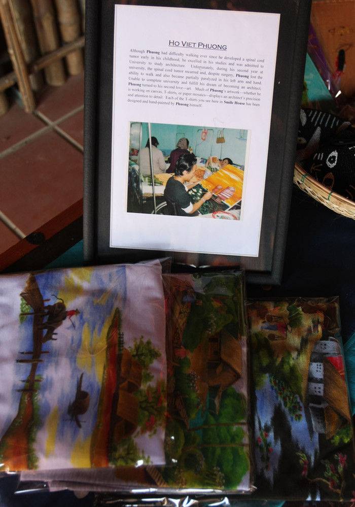 | Trong một lần đi du lịch tại Hội An, George Nelson (đến từ nước Mỹ) đã rất cảm động trước sự nỗ lực vươn lên trong cuộc sống của các em khuyết tật đi xe lăn bán hàng thủ công mỹ nghệ. |