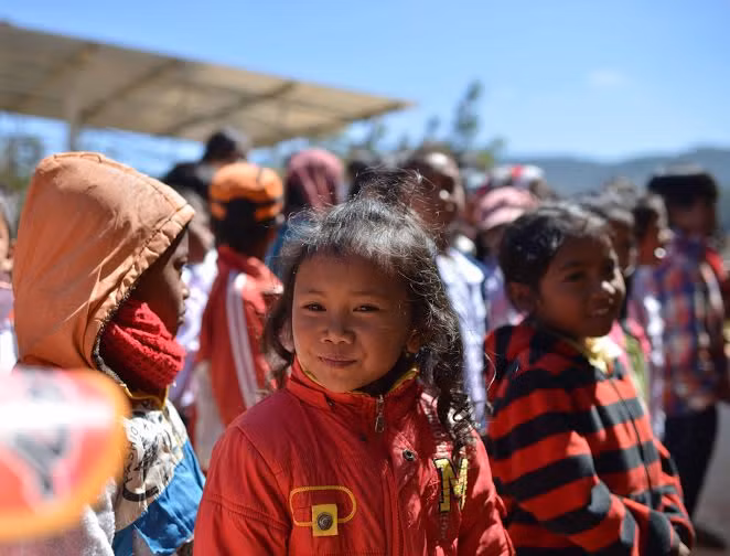 | Các em thôn Lsng Tranh (Lạc Dương, Lâm Đồng) vui vẻ nhận quà. |