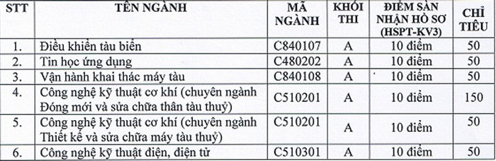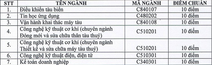 Trường CĐ Hàng hải I công bố điểm trúng tuyển vào trường như sau: