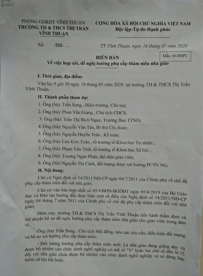| Biên bản họp của Trường Tiểu học và Trung học cơ sở Thị trấn Vĩnh Thuận |