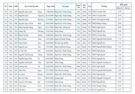 | Danh sách học sinh đạt giải kỳ thi chọn học sinh giỏi văn hóa lớp 9 cấp thành phố nhận tiền thưởng. |