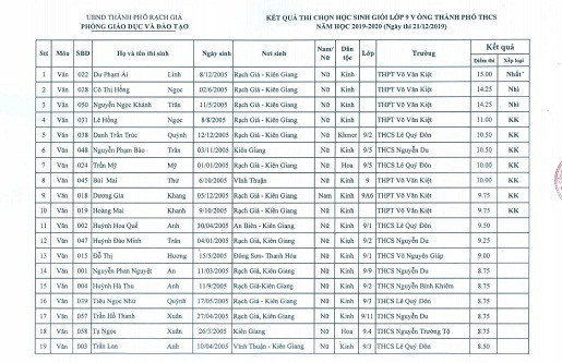 Ngày 25/12/2019, ông Huỳnh Văn Hóa – Trưởng phòng Giáo dục và Đào tạo thành phố Rạch Giá, tỉnh Kiên Giang ký và công bố kết quả thi học sinh giỏi cấp thành phố năm học 2019-2020.