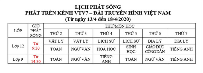 Vào ngày Thứ 6 hàng tuần, Bộ Giáo dục và Đào tạo sẽ thông báo kế hoạch phát sóng tuần kế tiếp tại Cổng thông tin của Bộ Giáo dục và Đào tạo;