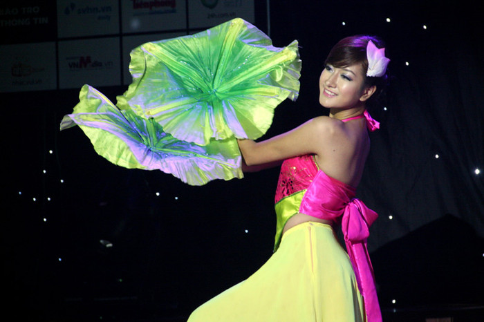 | Thí sinh Phạm Diệu Quỳnh, Đại học Khoa học Tự nhiên với bài múa Belly Dance đầy sôi động. |