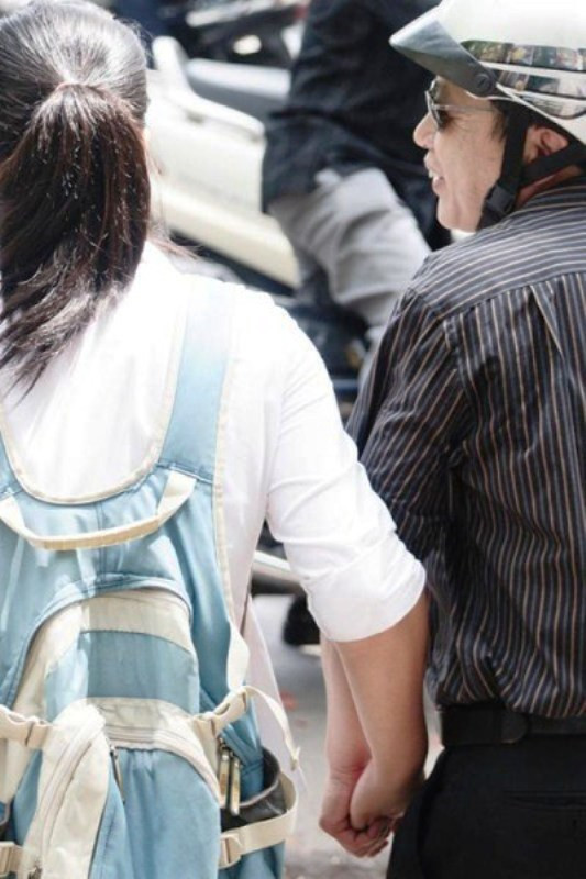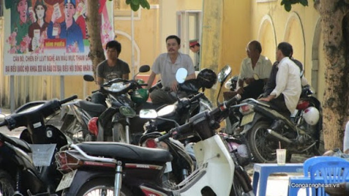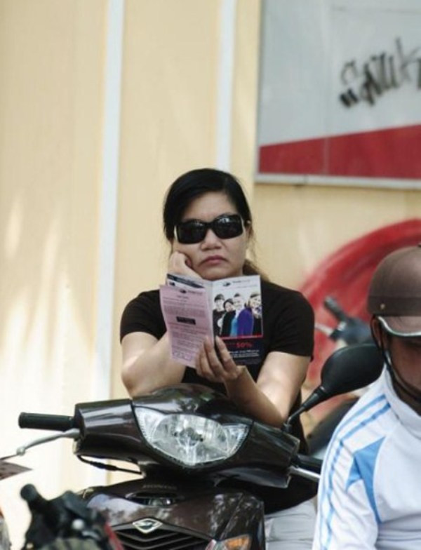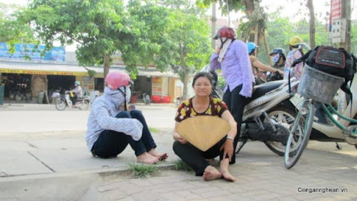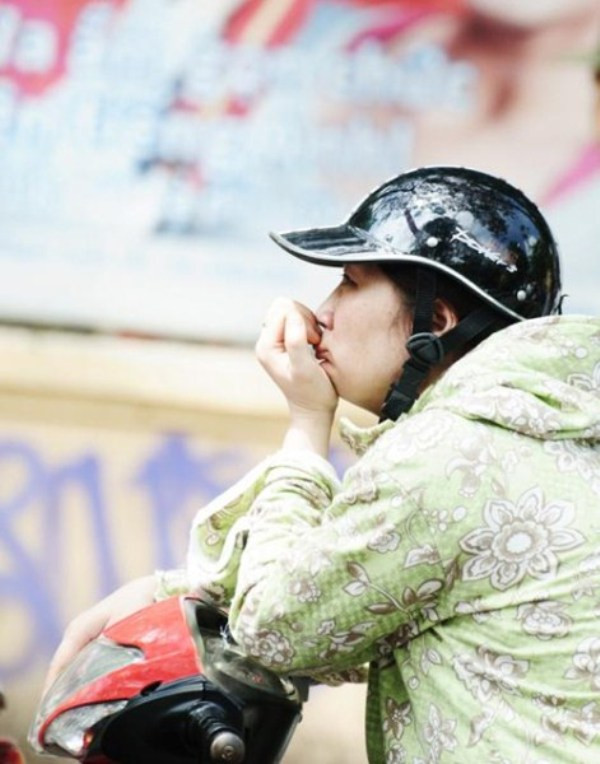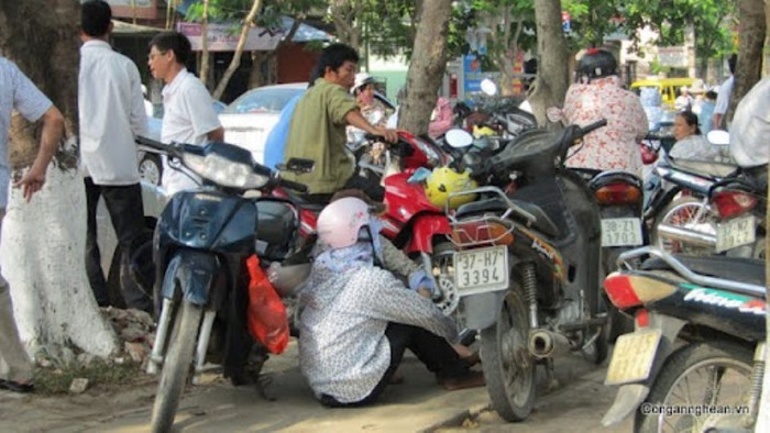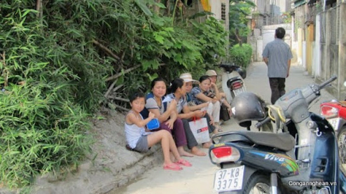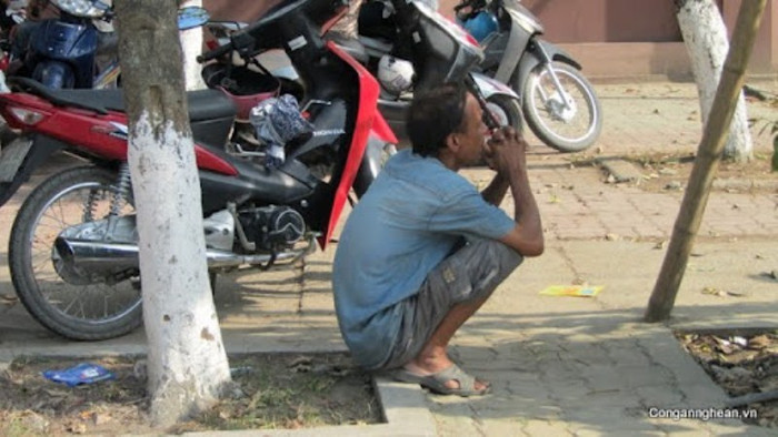 | Mệt mỏi đứng một mình chờ con, phụ huynh này tranh thủ chợp mắt. |