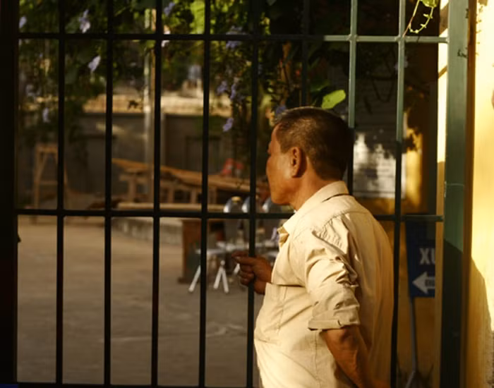 | Nhiều phụ huynh sốt ruột đứng ngồi không yên và liên tục ngó qua tường rào vào trong ngóng tin con. |