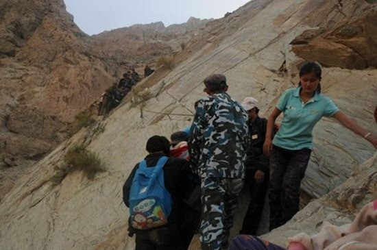 | Điều khó khăn nhất trong hành trình là thiếu nước uống. Bời vì, học sinh thường không cảm thấy khát khi lội qua nước, những đến đoạn đường núi cao rất khó kiếm nước uống. |