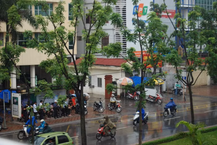 | Tại đường Hoàng Quốc Việt, trong lúc các thí sinh vào phòng thi, cơn mưa to bất chợt ập đến khiến các phụ huynh ướt sũng. (Xem đáp án môn Vật lí - Xem đáp án môn Toán) |