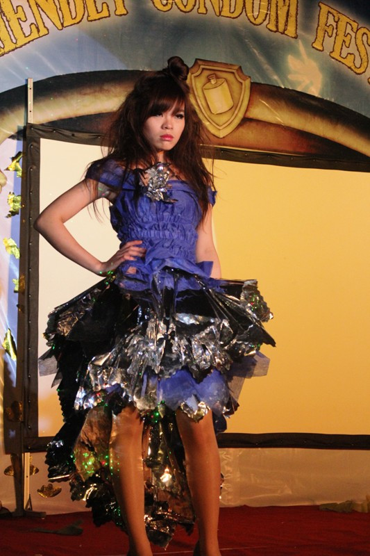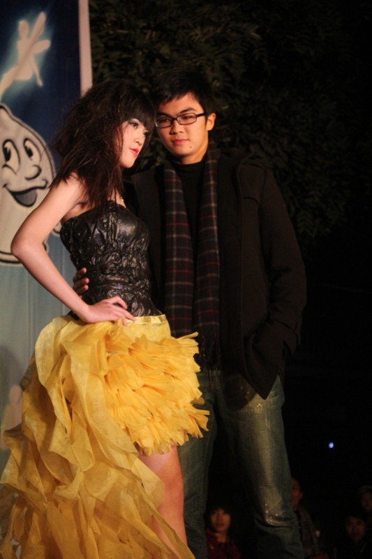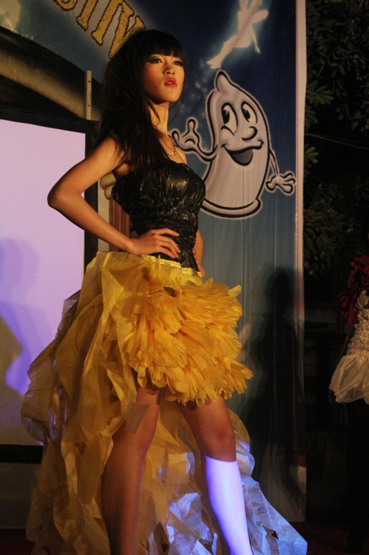 | Thời trang phế liệu không chỉ đem đến thông điệp cho sinh viên về ý thức bảo vệ môi trường, còn mang ý nghĩa sự sáng tạo của tuổi trẻ. |