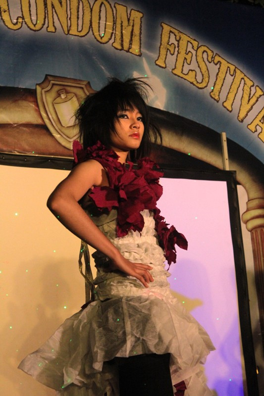 | Chất liệu thời trang được làm từ giấy hoa dưới sự sáng tạo của sinh viên mang sắc thái độc đáo. |