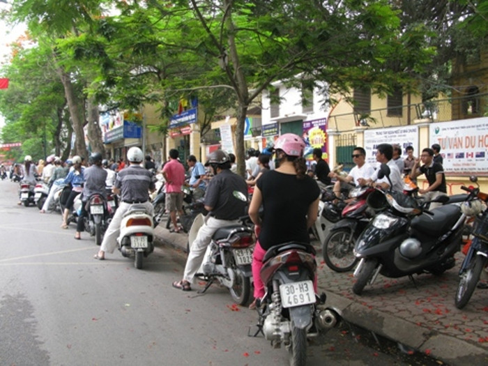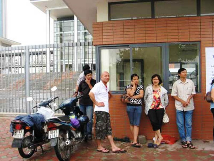 | Số phụ huynh khác vẫn kiên nhẫn chờ. |