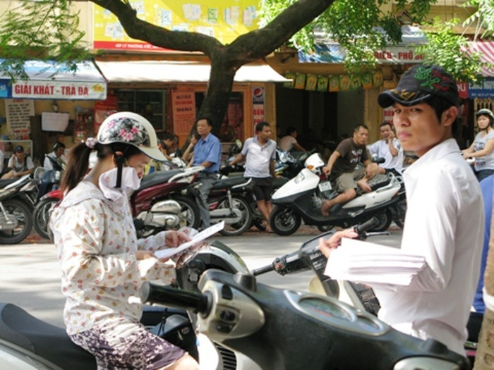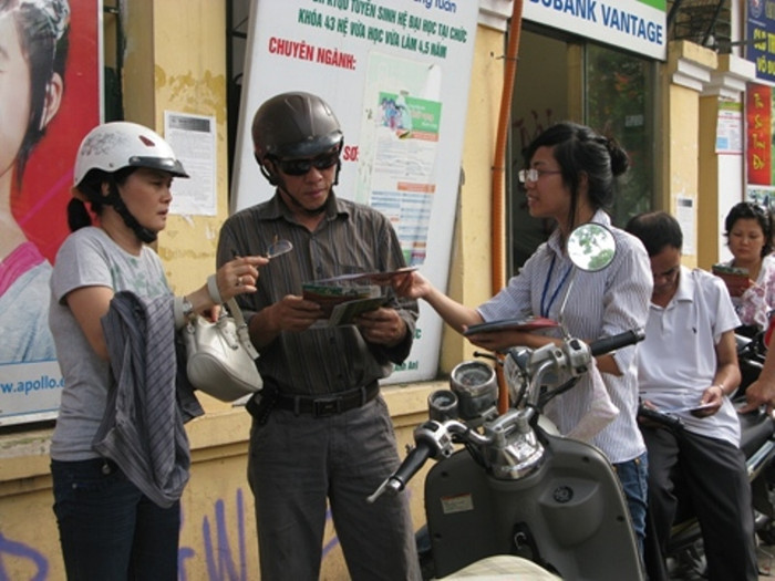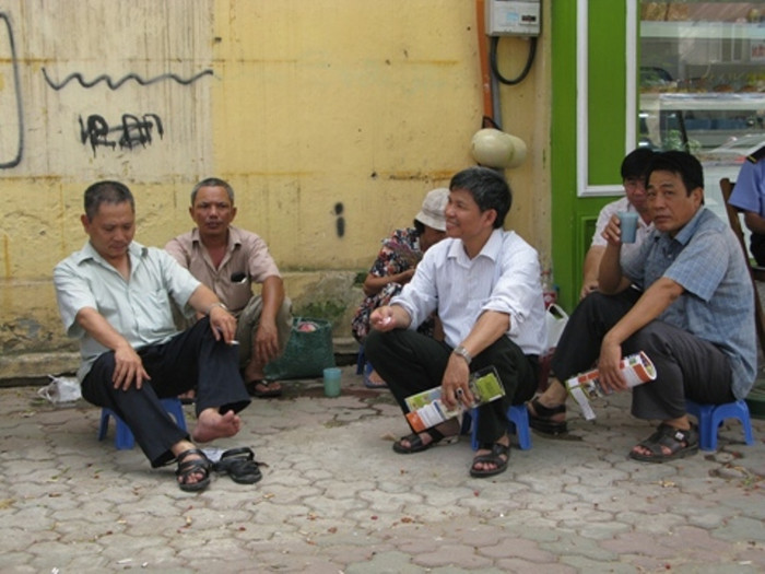 | Hoặc tranh thủ ngồi uống nước chè, đọc báo đợi con thi. |
