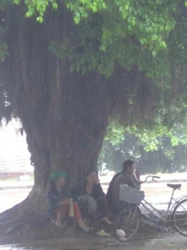 | Vì con bố, mẹ sẵn sàng đội mưa chờ đợi cho tới lúc hết giờ làm bài. |