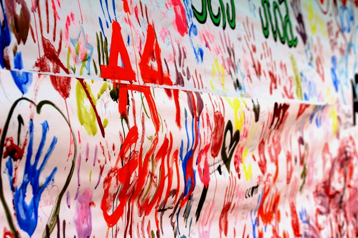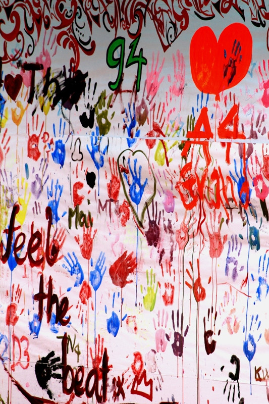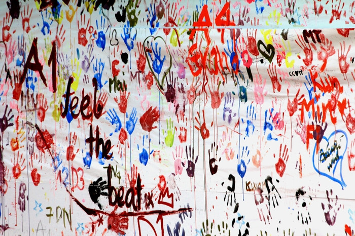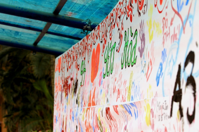 | Điểm nhấn trong bức tranh trừu tượng này là hình bàn tay, mỗi một bàn tay thể hiện một ước mơ, một điều mong muốn sẽ thành công trong tương lai. |