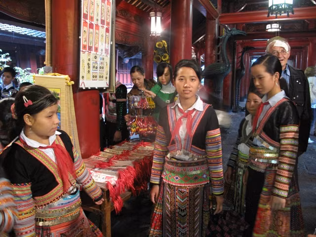 | Đến với Văn Miếu, những em học sinh vùng cao thắp hương tưởng nhớ người thầy Chu Văn An. |