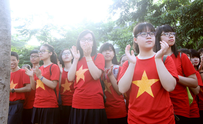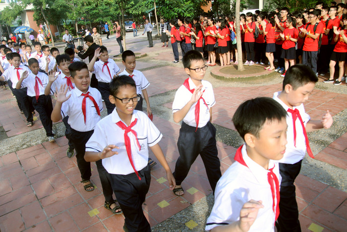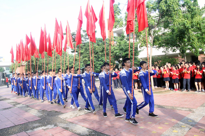 Trường Lương Thế Vinh sáng nay cũng làm Lễ khai giảng trong không khí hào hùng của những chiếc áo cờ đỏ sao vàng. Chủ tịch Hội đồng nhà trường, Nhà giáo Văn Như Cương đã có những lời tâm sự, căn dặn học trò của mình gây xúc động.