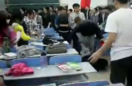 | Cuộc ẩu đả chỉ kết thúc khi có sự can thiệp của một giáo viên (nữ, áo trắng) |