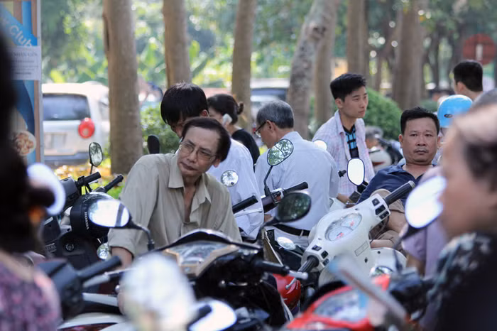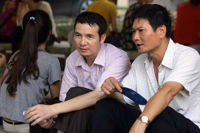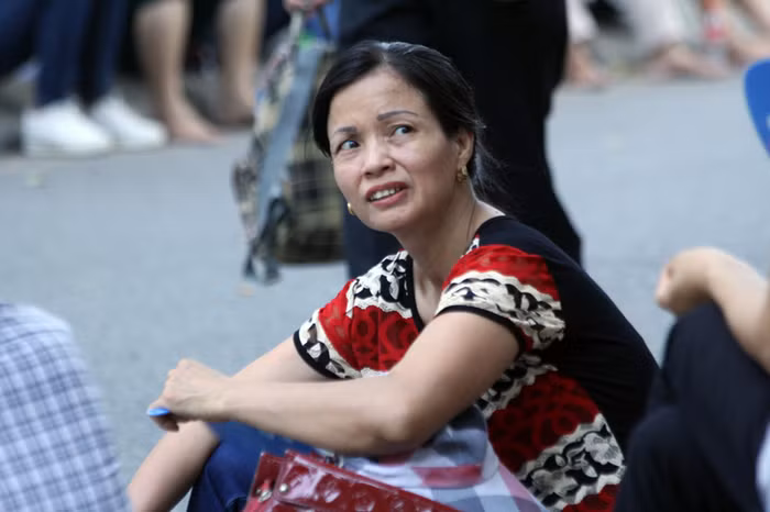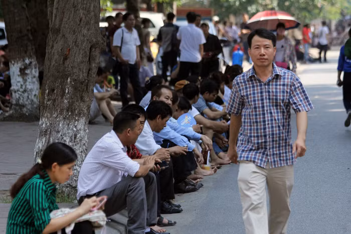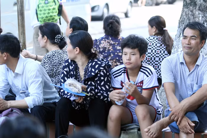 | Bên ngoài, dưới trời nắng nóng rất nhiều phụ huynh và người nhà thí sinh đứng, ngồi chờ mướt mồ hôi. |