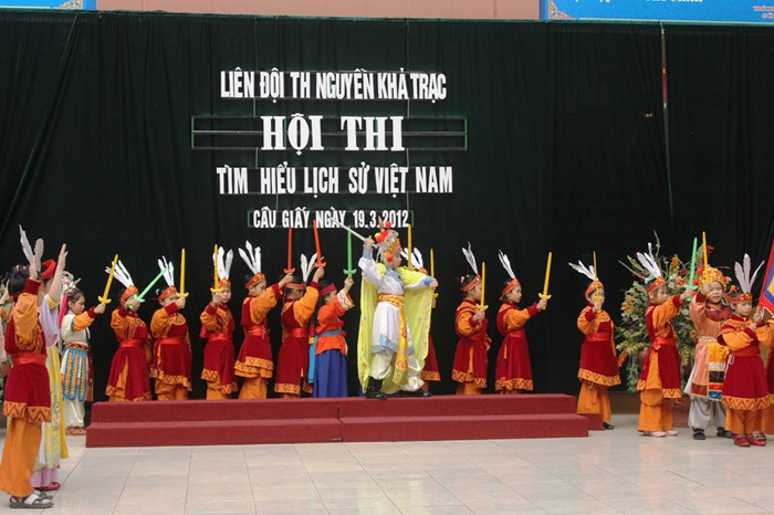 | Việc tổ chức những Hội thi “Theo dòng lịch sử” như trường tiểu học Nguyễn Khả Trạc sẽ giúp học sinh yêu môn lịch sử hơn. Theo bà Thủy, đôi khi chỉ thi tự luận trên giấy các em sẽ không phát huy được tư duy và tinh thần tự học. Với hình thức thi “Theo dòng lịch sử” học sinh cảm thấy mình được đóng vai, nhập thân sẽ nhớ lâu, tự hào với truyền thống lịch sử dân tộc. |